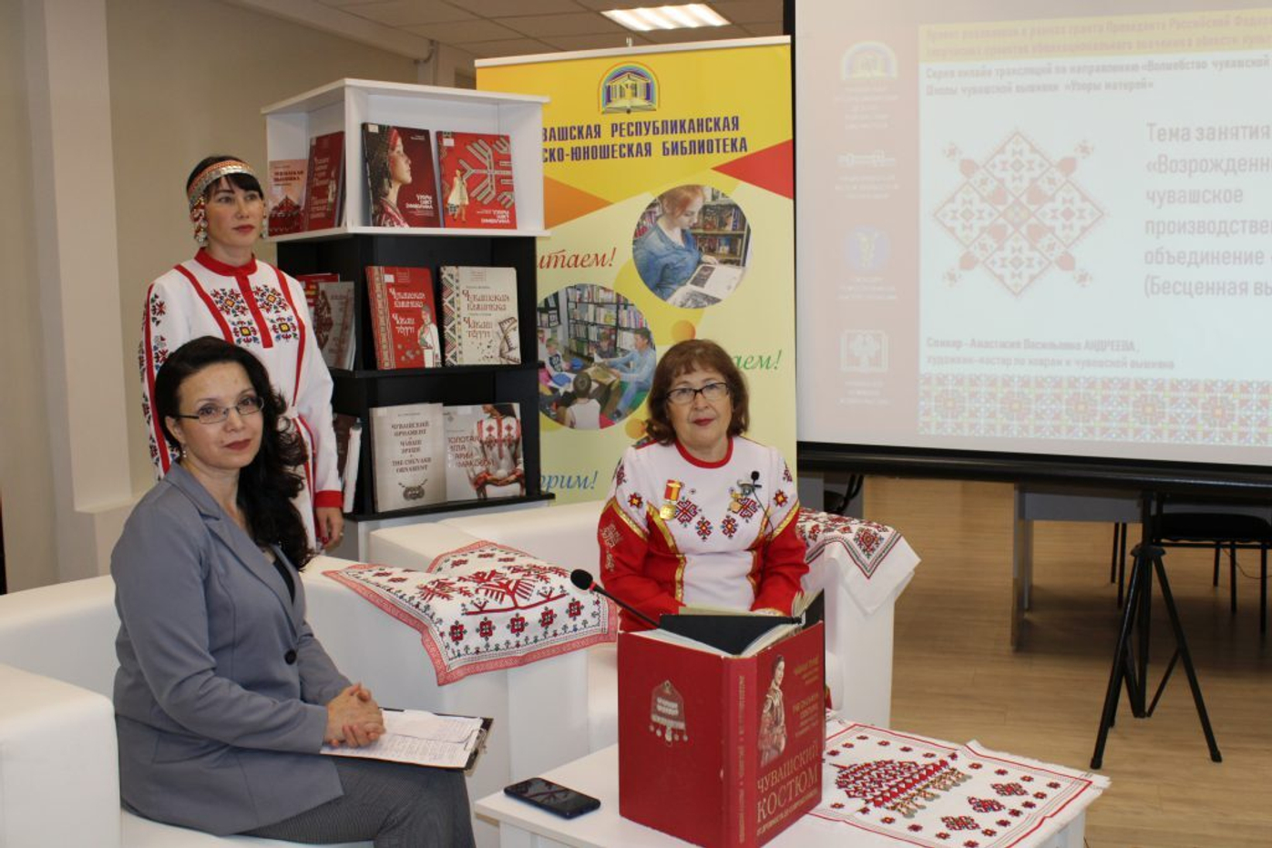Чувашская республиканская детско-юношеская библиотека организовала очередную онлайн трансляцию серии «Волшебство чувашской вышивки» из цикла занятий школы чувашской вышивки «Узоры матерей» в ходе одноименного проекта.